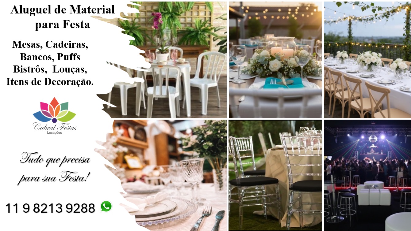 #Araçariguama #AluguelDeCadeiras #CabralFestas #EventosAraçariguama #FestaEmAraçariguama #LocaçãoDeMobiliário