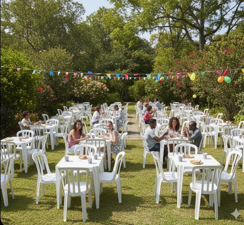 O que oferecemos: ✅ Cadeiras Tiffany e modelos clássicos. ✅ Mesas de diversos tamanhos e toalhas. ✅ Entrega rápida e pontual em toda a região de Taboão. ✅ Material higienizado e de alta qualidade.